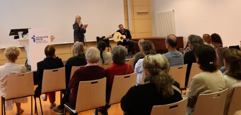 Mariam Claren (HÁWAR.help) berichtete über die aktuelle Situation im Iran und Hilde Scheidt erzählte von dem Engagement in Aachen unter dem Motto FRAU.LEBEN.FREIHEIT.